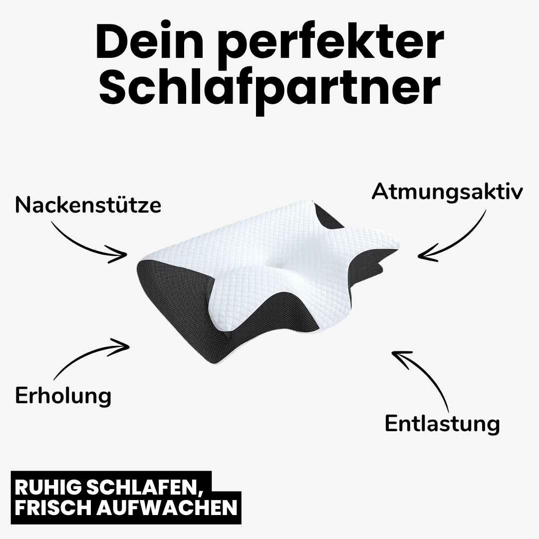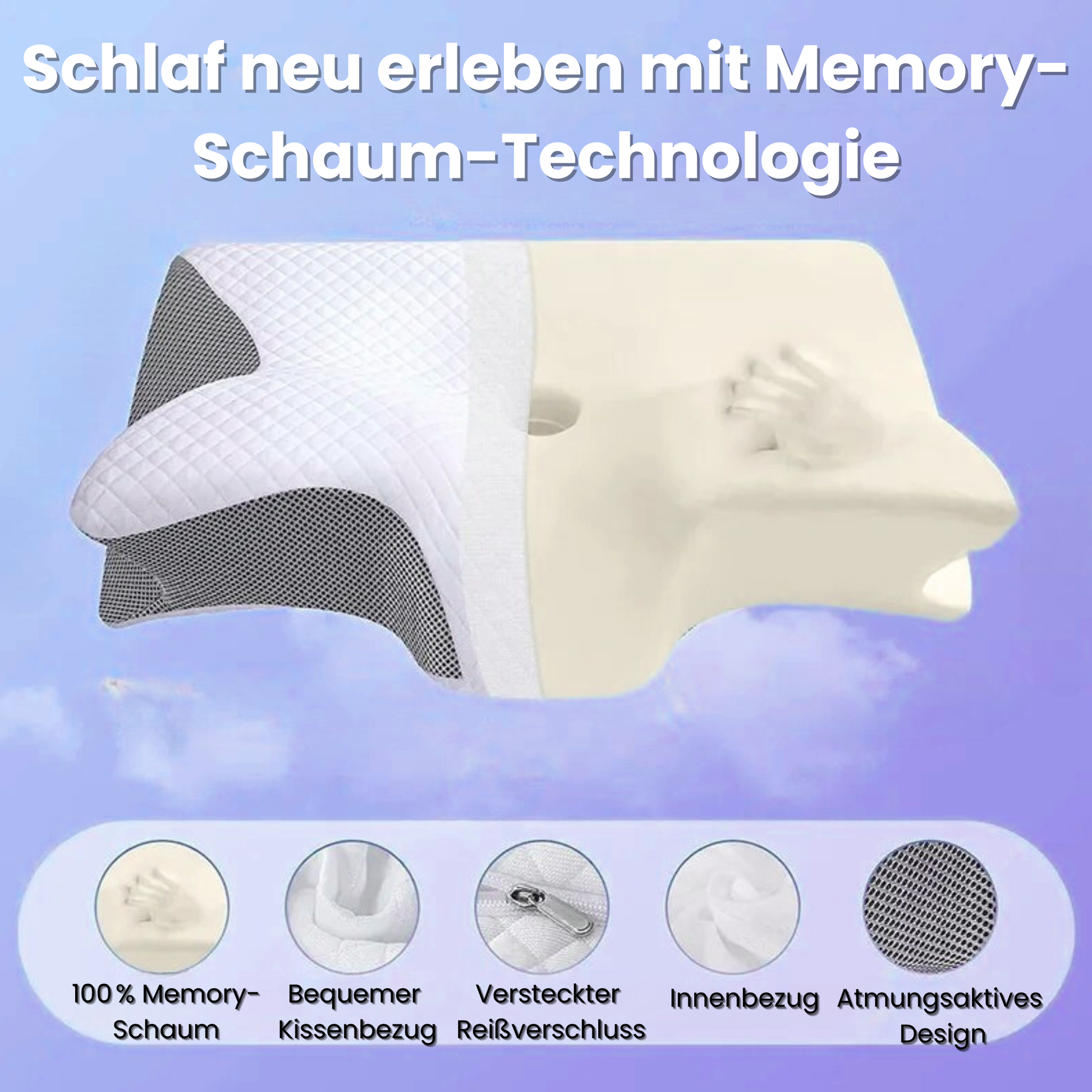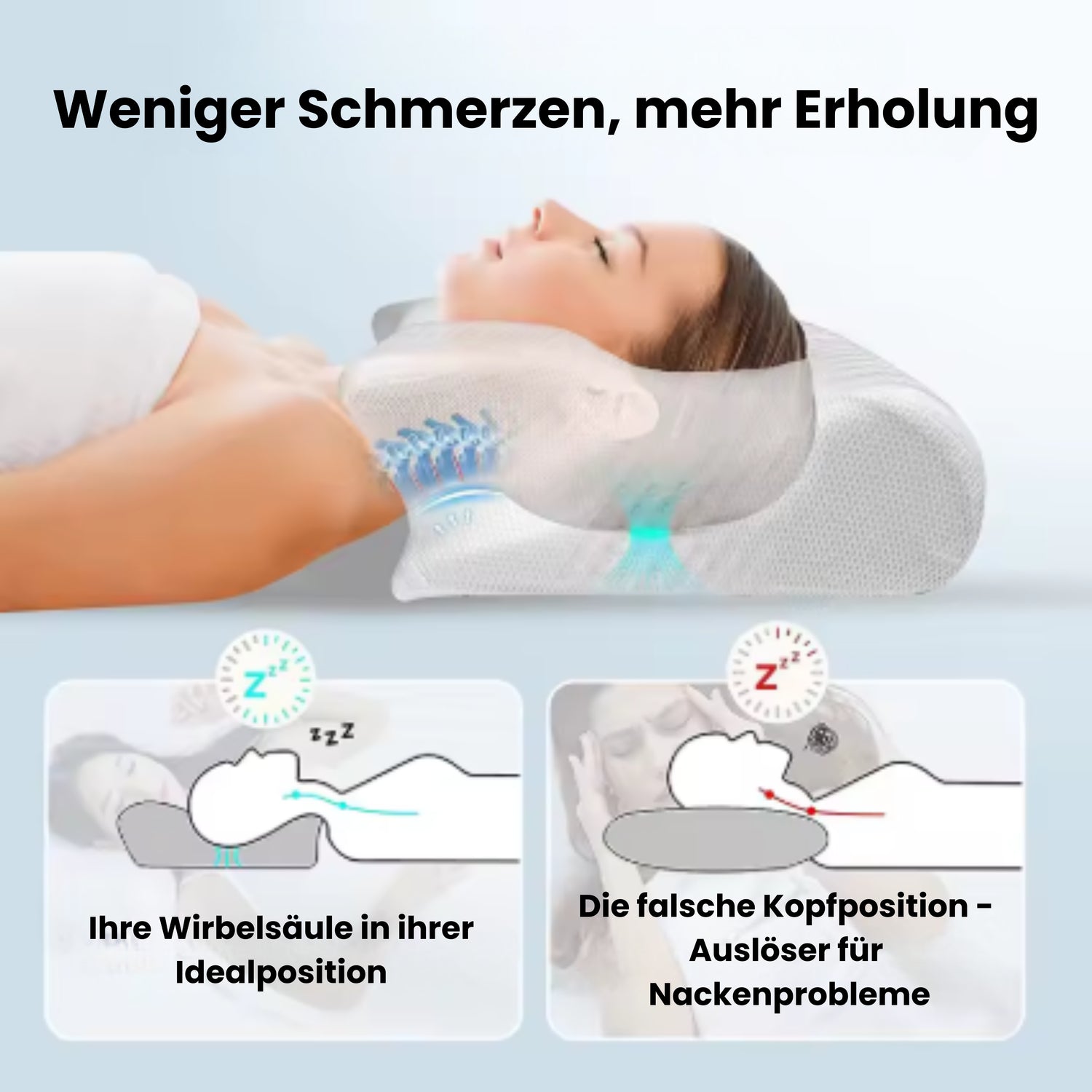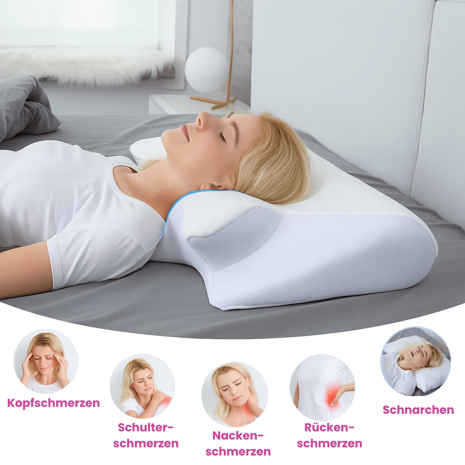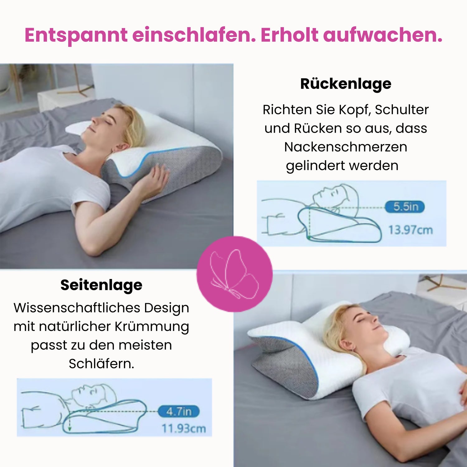 Die ergonomische Wölbung von CalmDreamz™ gibt Ihrem Nacken exakt den Halt, den er für eine neutrale Ausrichtung benötigt. Dadurch werden Druckpunkte nicht nur vermindert, sondern komplett aufgelöst – für eine spürbare Entspannung von der ersten Nacht an.
